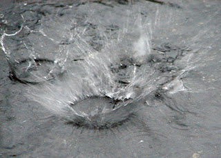 As I walked home from work a few days ago, I noticed the splash some steady streams of water were making on the pavement. I thought it would make a good picture, but it was dark, cold and wet. So today that it rained, I remembered the splash and went back and took this picture. The lighting wasn't great and it came out a bit grainy, but I still think it's a neat picture.